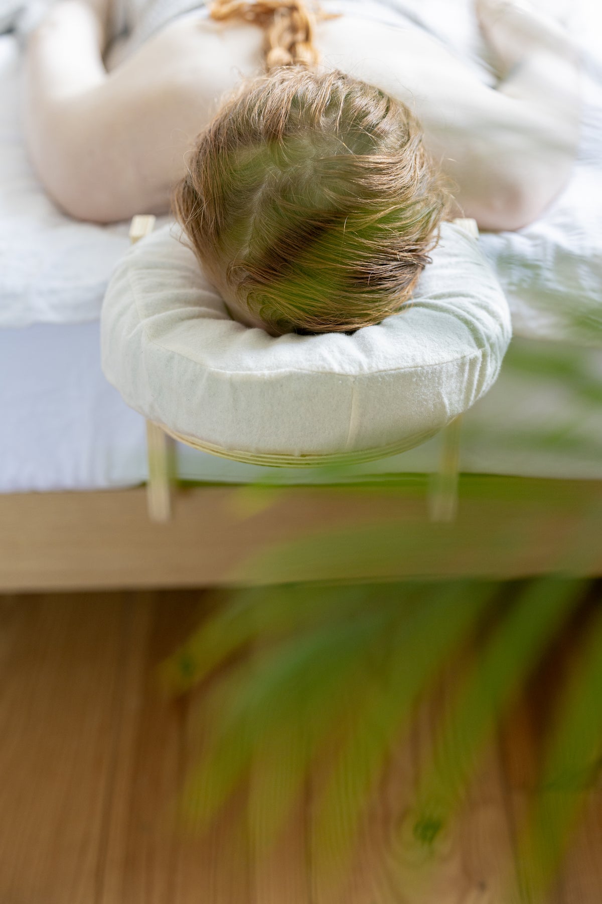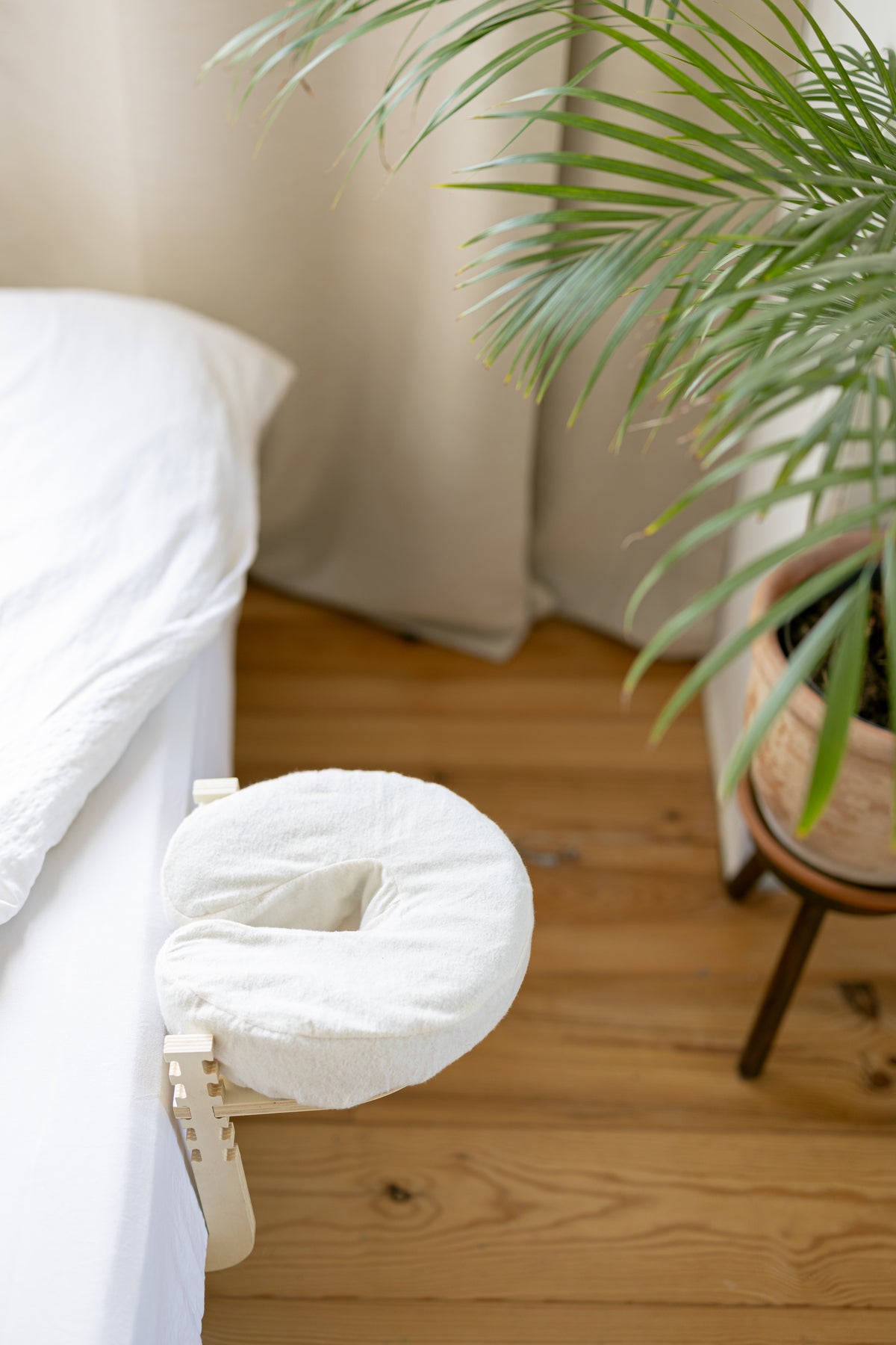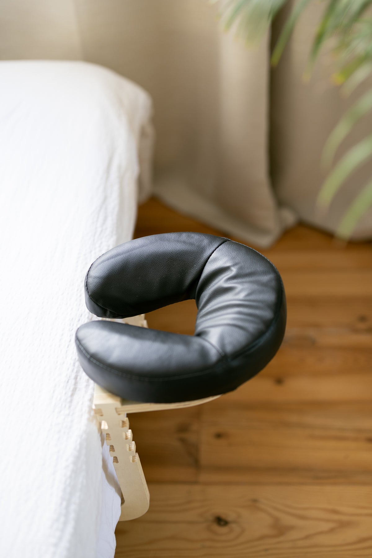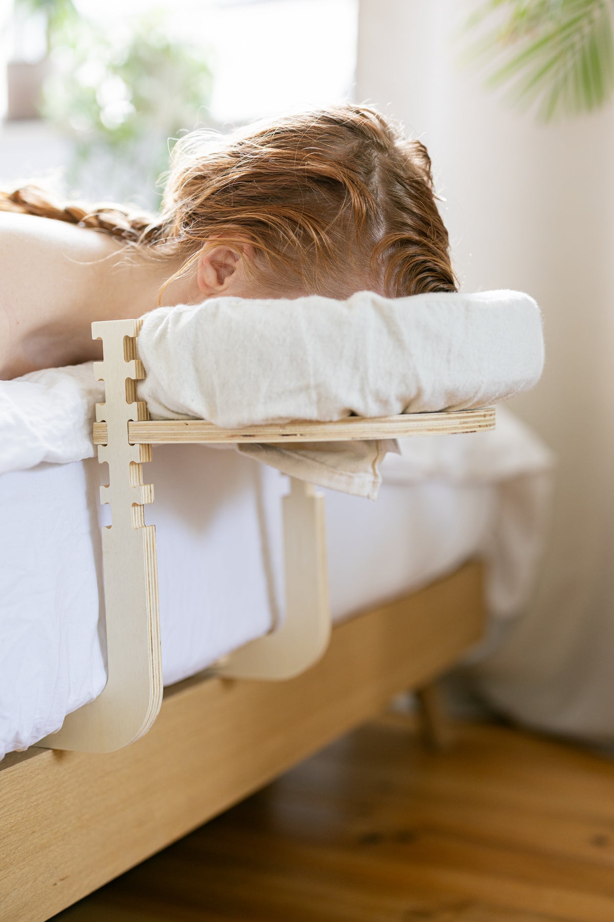 Finalmente uma massagem confortável na cama: A estrutura prolonga o colchão e apoia a cabeça perfeitamente, sem desconforto.